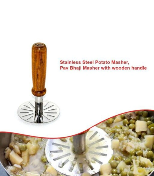 Stainless Steel Potato Masher, Pav Bhaji Masher with wooden handl