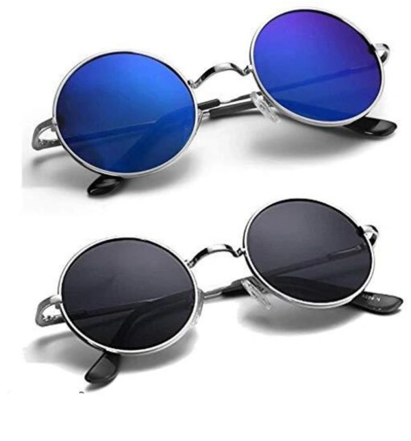 Naygt UV Protection Round Unisex Sunglasses (Black, Blue) - Pack of 2 Girls&Boys